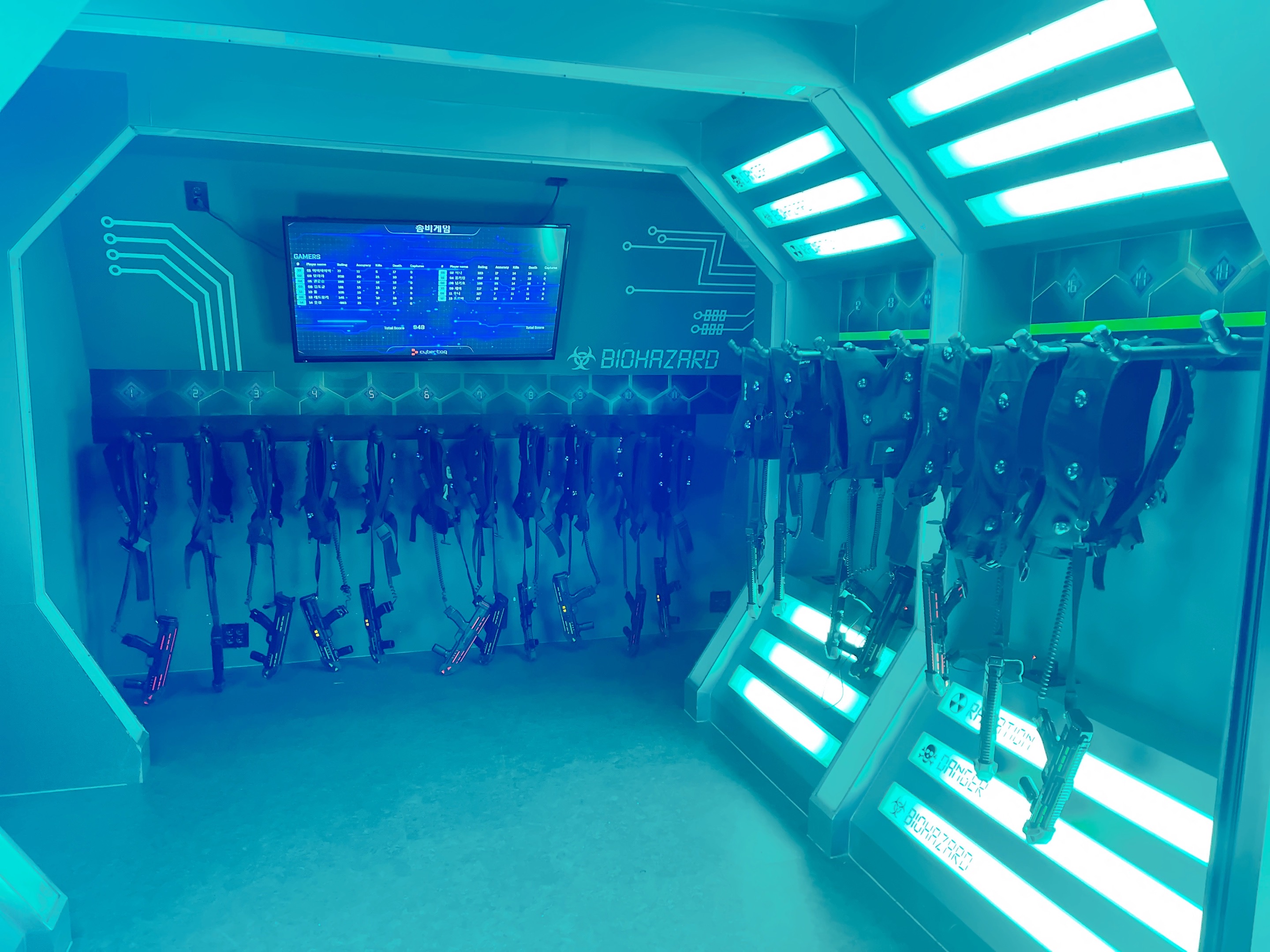 이쪽에서 조끼와 총을 지급받아 착용합니다